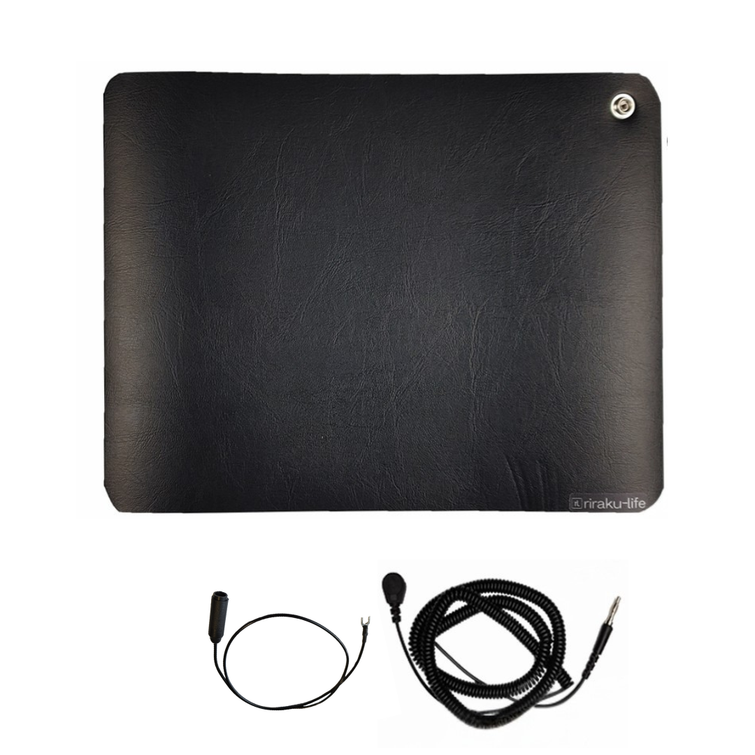 | 主な特徴 | ・サイズ:34cm×25cm ・接続方法:ネジ式コード ・表面抵抗率:10^3〜10^4Ω ・表面:導電性レザー ・裏面:クッション素材 ・厚さ:3mm ・耐用年数:2〜3年(使用頻度によります) ※導電性は徐々に落ちてきてしまいますので1年〜1年半サイクルで定期的に買い替えると良い状態を継続できます |