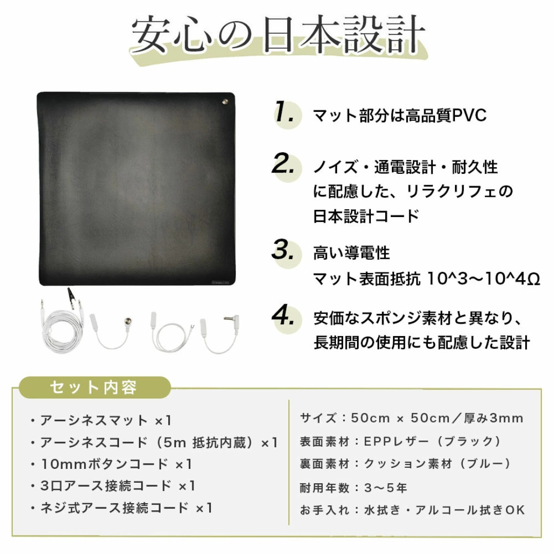 Earthiness Mat アーシネスマット (EPPレザータイプ) 50cm×50cm コードセット