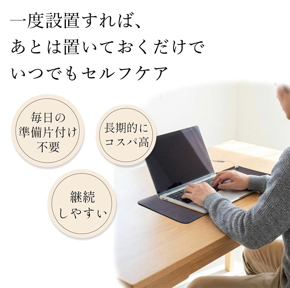 使用方法 座る時、椅子やパソコンチェアーに敷いたり、デスクマットとしてキーボード兼マウスパッドとして使用できたり、または足元に敷くマットとして、また寝る時に頭や背中、腰、足元に置くことなどオールマイティに使い勝手のよいサイズです。