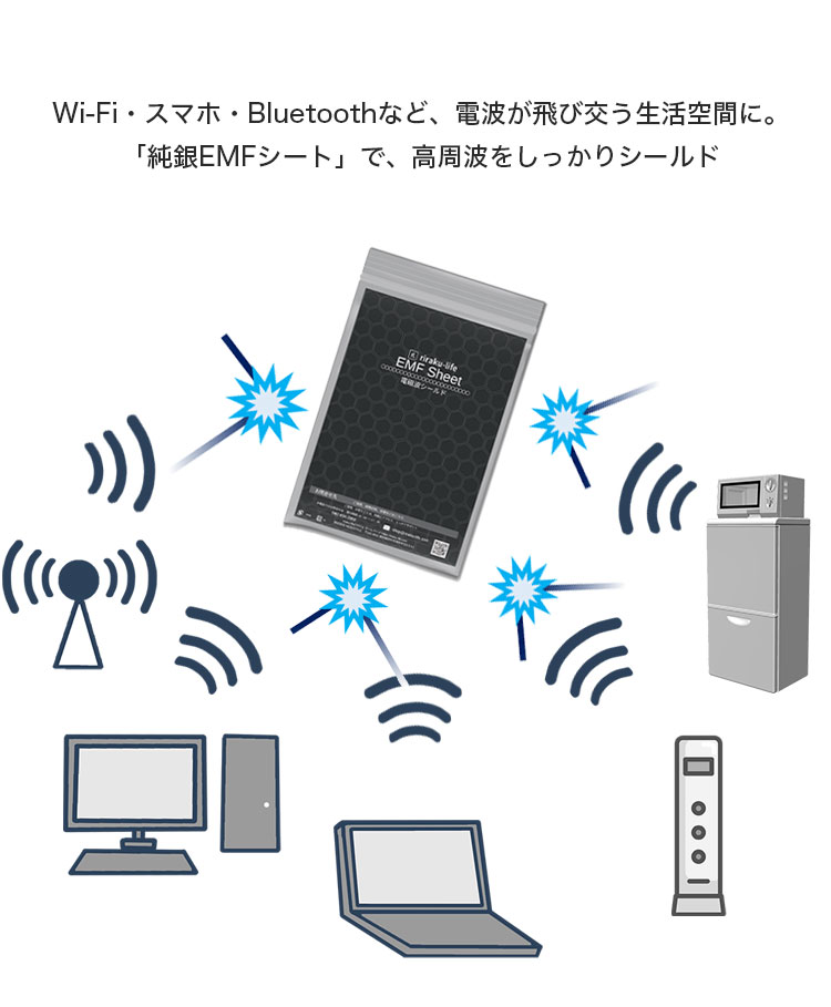 | 商品概要 | この純銀EMFシートは、電磁波の高周波を低減し、MHz〜GHzの周波数を遮断することができます。低周波帯の電場の遮断にも効果がありますが、電場に対する効果を最大限に引き出すためには、アースに接続することが推奨されます。 ※磁場には効果がありませんのでご注意ください。 |