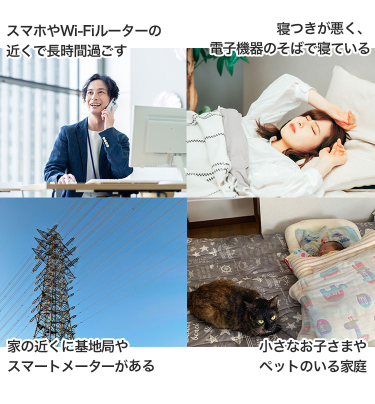 | ご注意 | ※電磁波測定器では、電場の正確な測定ができない場合があります。 ※磁場は別の対処方法が必要ですので、事前にご確認ください。 ※低周波の電場には効果が限定的なため、アースに接続することが推奨されます。 ※アースに接続する専用コードは別途お買い求めください。 |